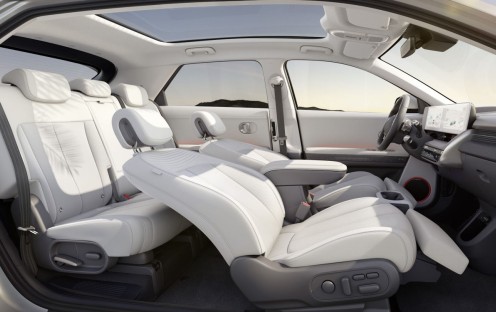 Kabina Ioniq 5 jest oazą przestronności, komfortu i funkcjonalności. Samochód oferuje niezwykle przestronne wnętrze, które można swobodnie dostosować do potrzeb. Wygodne siedzenia, wysokiej jakości materiały i zaawansowane technologie zapewniają niezapomniane doświadczenia podczas podróży. Projektanci zainspirowani motywem Living Space stworzyli nowatorskie rozwiązania wewnątrz samochodu. Jednym z najbardziej innowacyjnych elementów jest Universal Island – ruchoma konsola środkowa, która może być przesuwana nawet o 140 mm. Pod płaską podłogą umieszczono akumulatory, dzięki czemu pasażerowie zyskują większą swobodę ruchu.